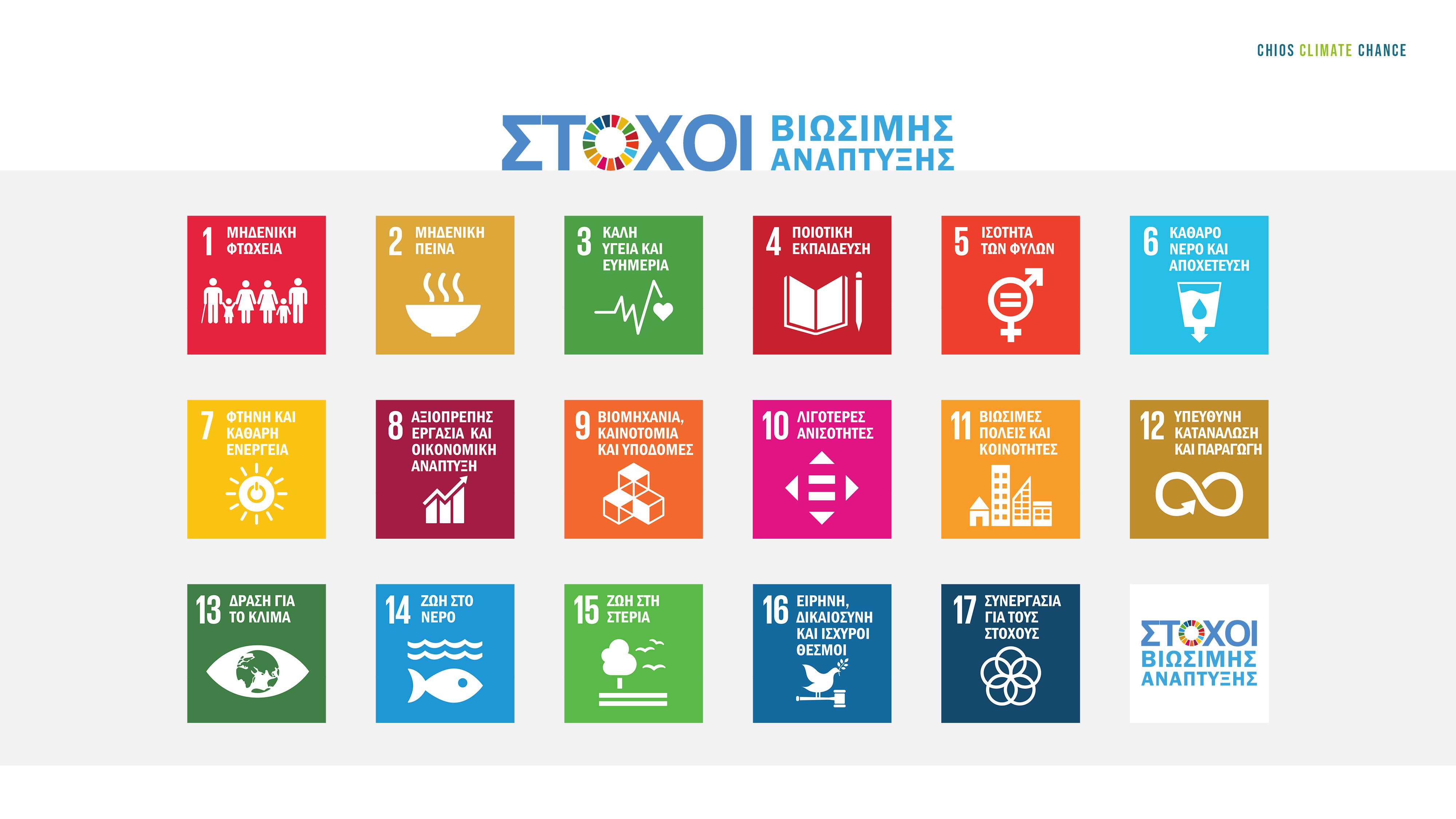 Οι 17 Στόχοι Βιώσιμης Ανάπτυξης (SDGs) ανακηρύχθηκαν το 2015 από τα Ηνωμένα Έθνη και αποτελούν έναν παγκόσμιο οδηγό δράσης για έναν καλύτερο, δικαιότερο και πιο βιώσιμο κόσμο έως το 2030.